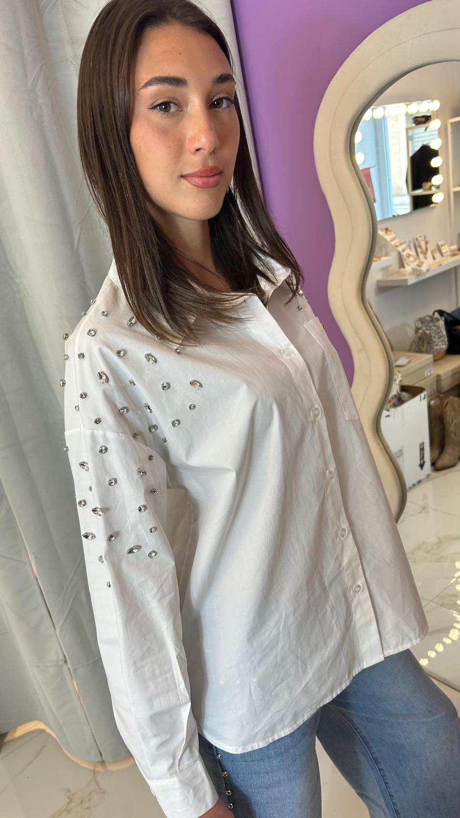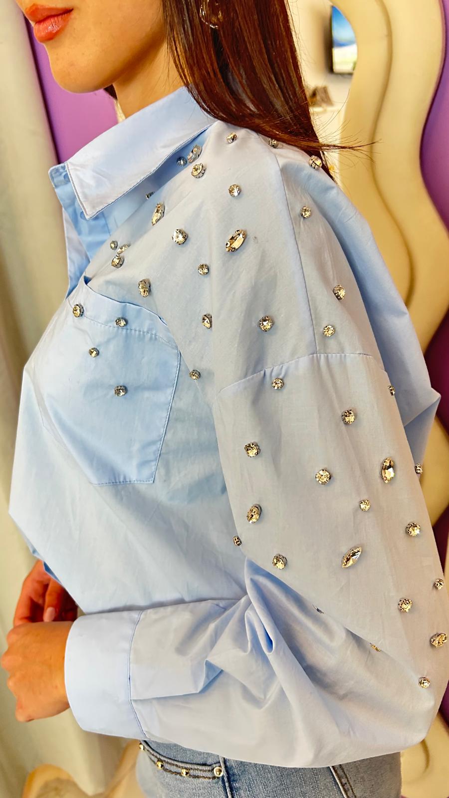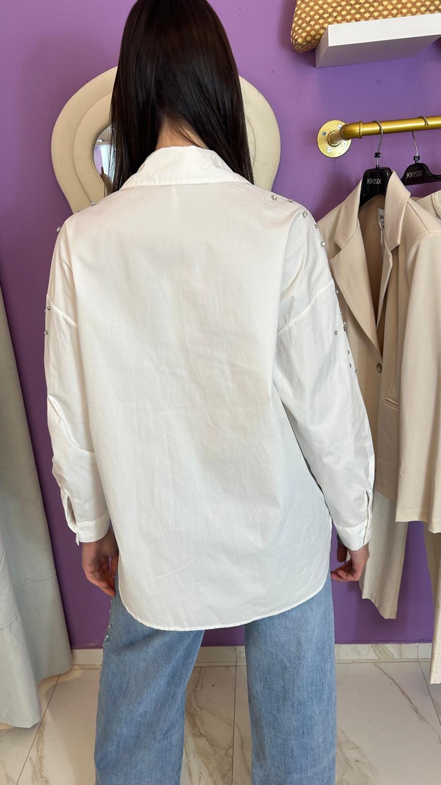 Camicia over con castoni sulle spalle, con taschino sul davanti in cotone, può essere elegante o casual.