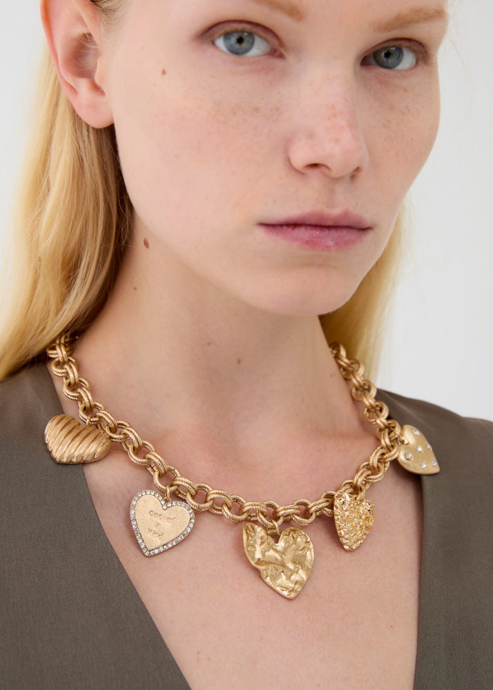 Collana girocollo di NALI, con ciondoli di cuori lavorati oro, perfetta per chi cerca tendenza e accessori fashion di qualità.