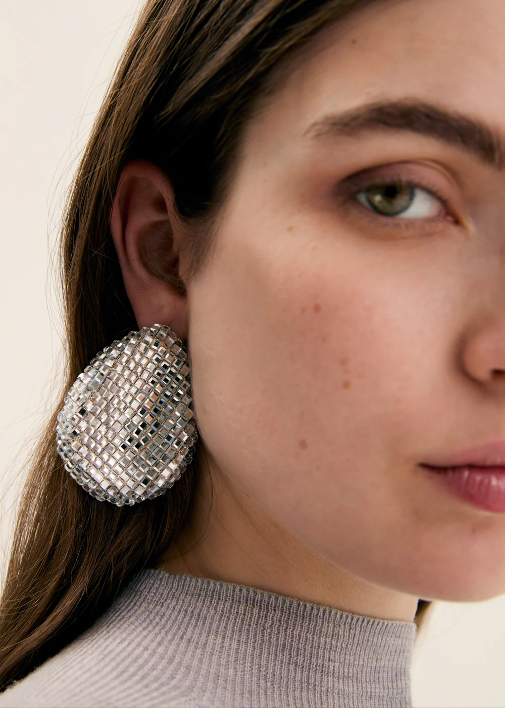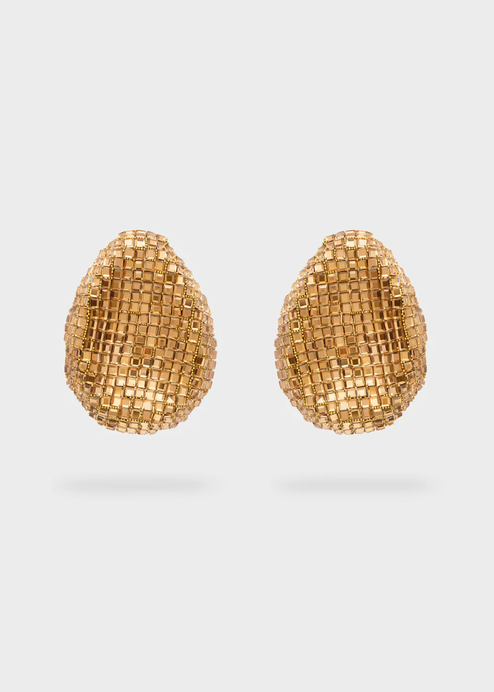 Orecchini a goccia maxi con texture luminosa e lavorazione a rete, un design elegante e contemporaneo che dona luce al viso.