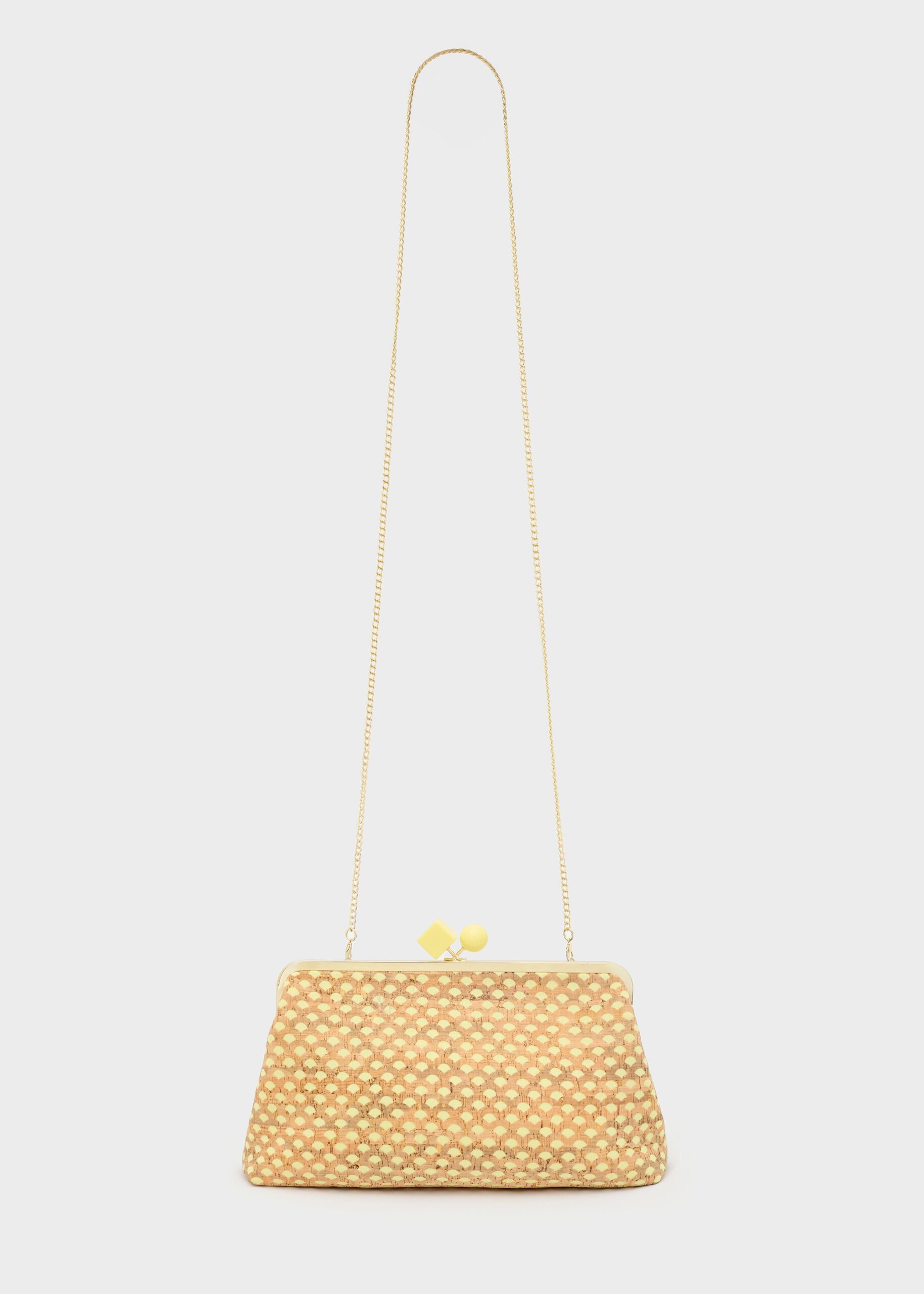 POCHETTE in sughero stampata, di Nalí, molto originale, con tracolla a catena.