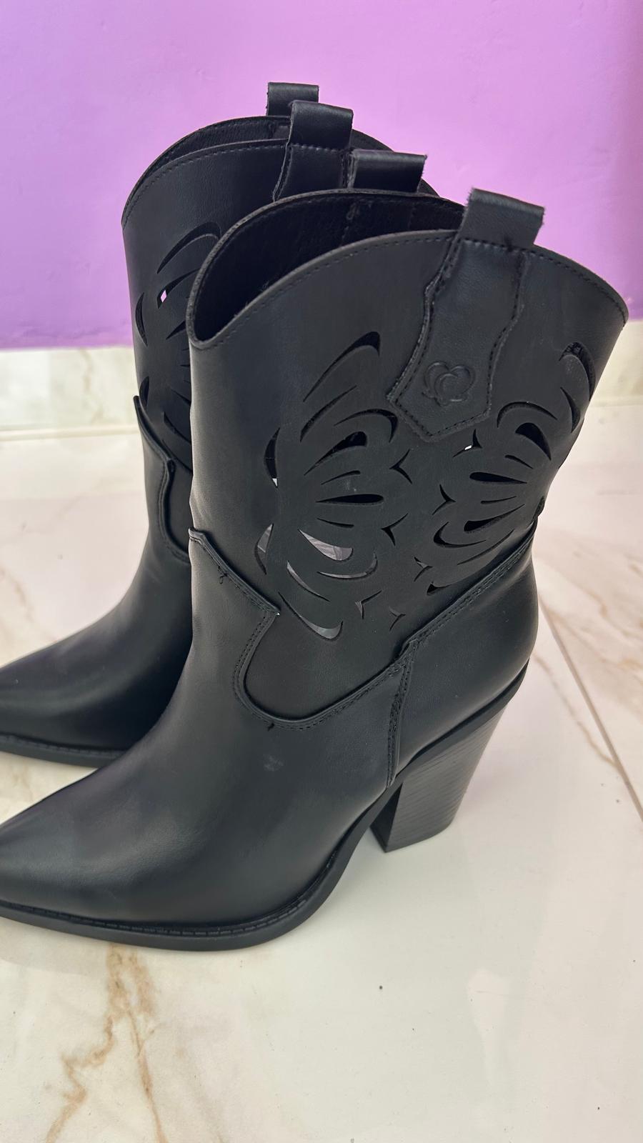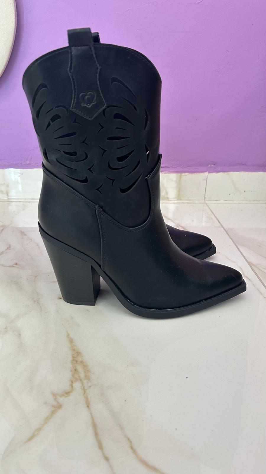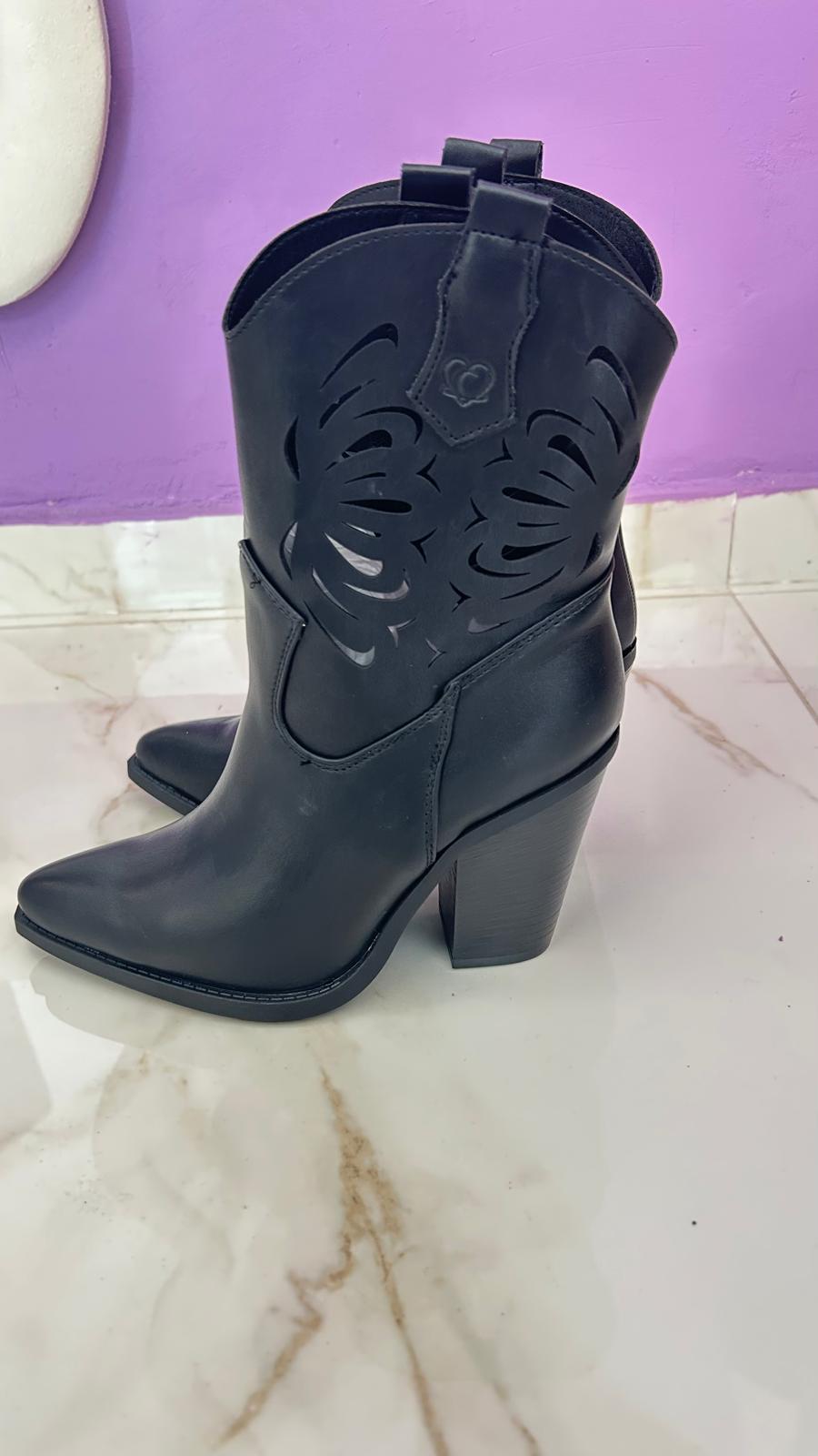 Texano corto traforato, con tacco 8 cm, in ecopelle fuori interno in pelle, con design a punta di Crichic, chiusura lampo di lato.